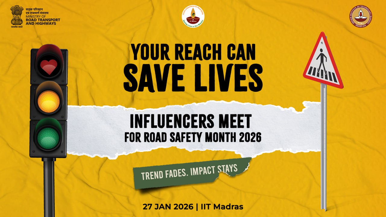 The Influencers Meet on Road Safety Communication is organised by the Centre of Excellence for Road Safety (CoERS), IIT Madras, as part of National Road Safety Month 2026. The event brings together social media influencers and public figures to engage with verified road safety information and institutional perspectives on road safety in India.