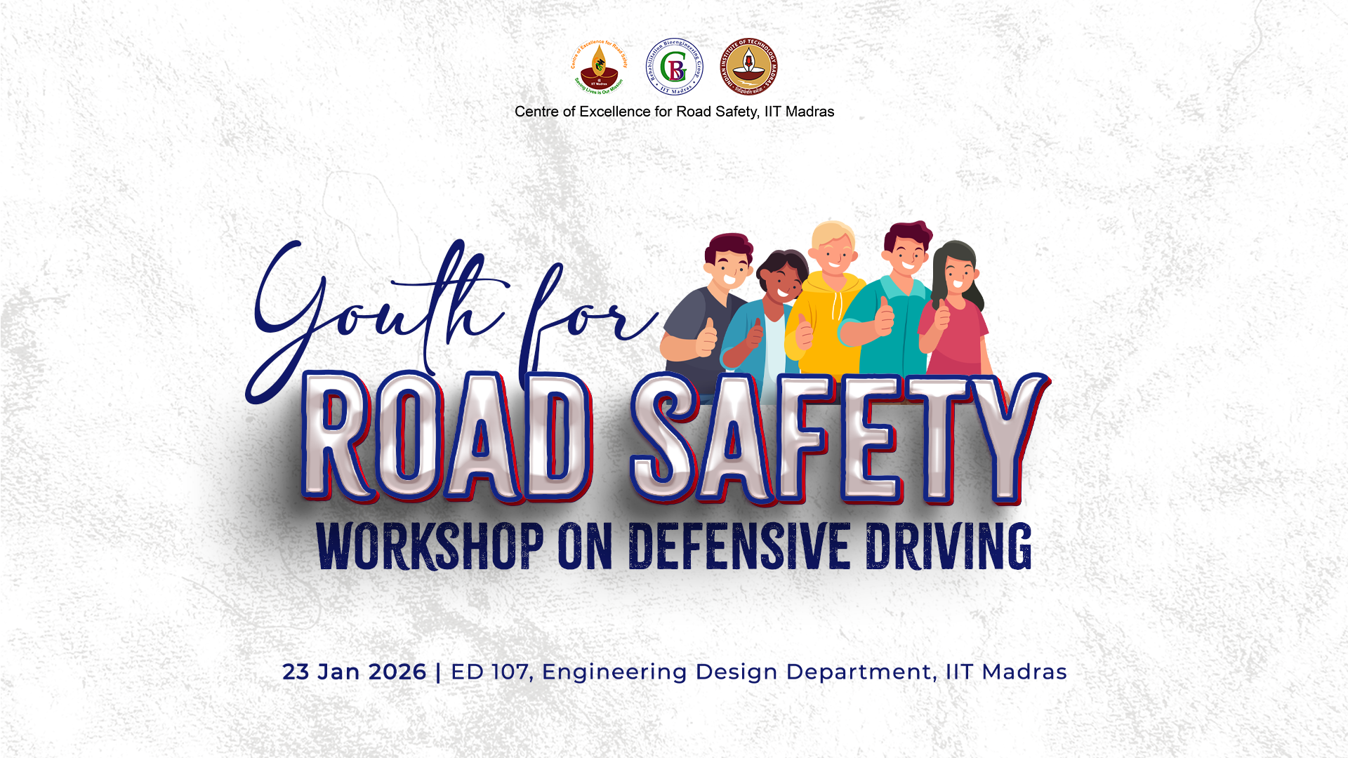 The Youth for Road Safety – Defensive Driving Training Programme is organised by the Centre of Excellence for Road Safety (CoERS), IIT Madras, as part of National Road Safety Month 2026. The programme aims to equip college students with foundational skills in defensive driving, fostering responsible attitudes and safety-conscious behaviour on Indian roads.